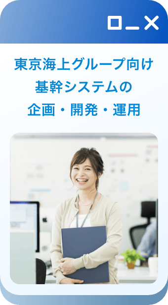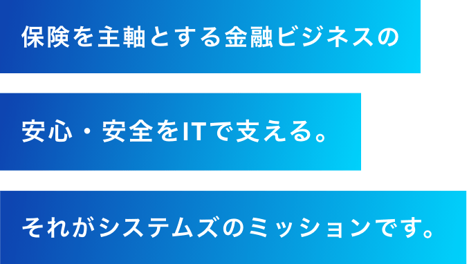 東京海上日動システムズ(以降は「システムズ」)は、東京海上グループが保険事業を中心に提供する「安心・安全」を、IT・デジタル戦略とシステム開発・運用で支える専門集団です。